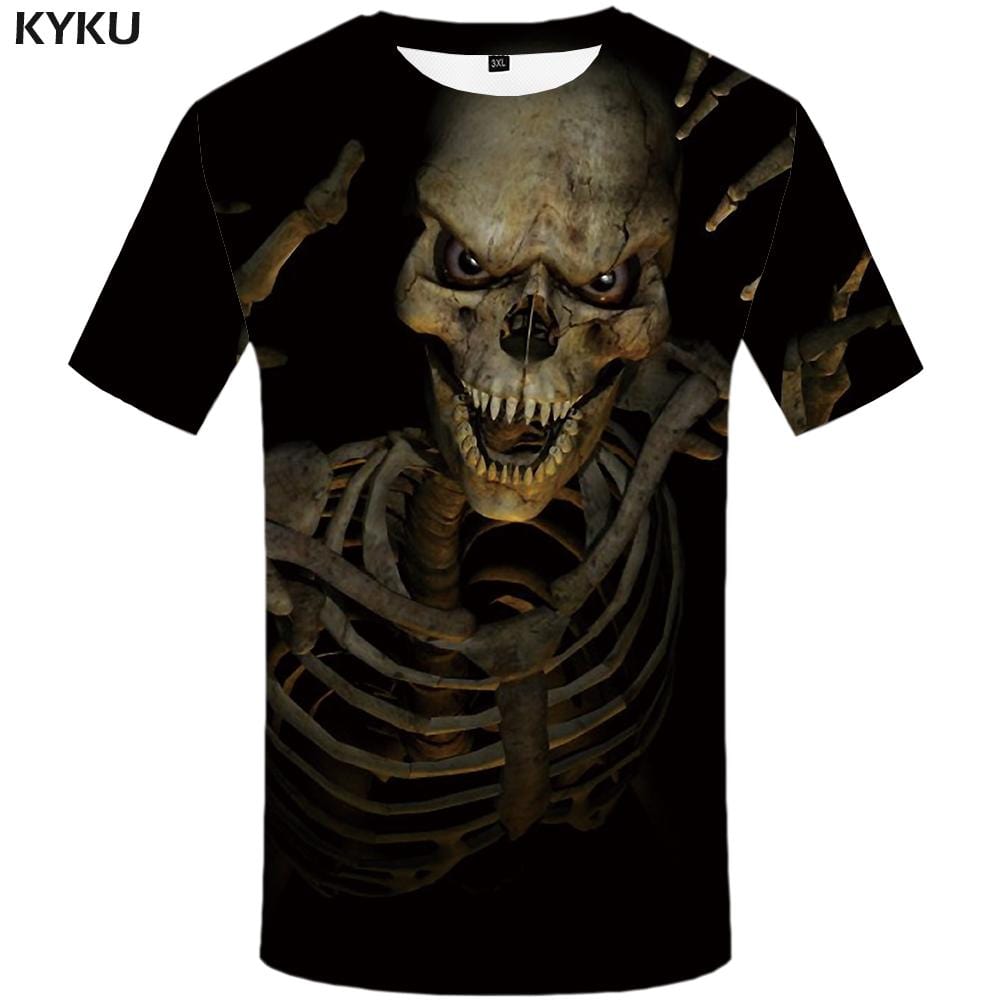 Skull T-shirts Men Skeleton Tshirts Print Gothic T shirts Funny Black Tshirt Anime Punk Rock T-shirt 3d Mens Clothing Hip hop
