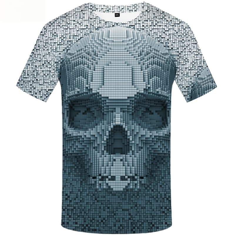Skull T shirts Men Psychedelic T-shirts 3d Geometric Shirt Print Short Sleeve