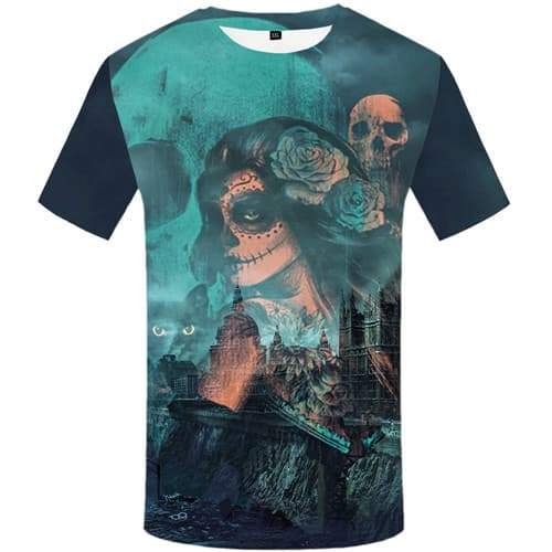 Skull T-shirt Men Animal Tshirt Printed Reflection Tshirts Casual Graffiti Tshirts Cool Mountain Shirt Print Short Sleeve