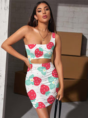 • Strawberry Dress Women Flower Halter Sleeveless Lovely Pleating Harajuku Bodycon Dress