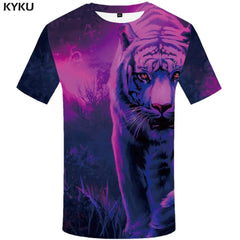 Tiger T-shirts Men Purple Tshirt Anime Forest T shirts Funny Animal Tshirts Print Time T-shirt 3d Mens Clothing Short Sleeve