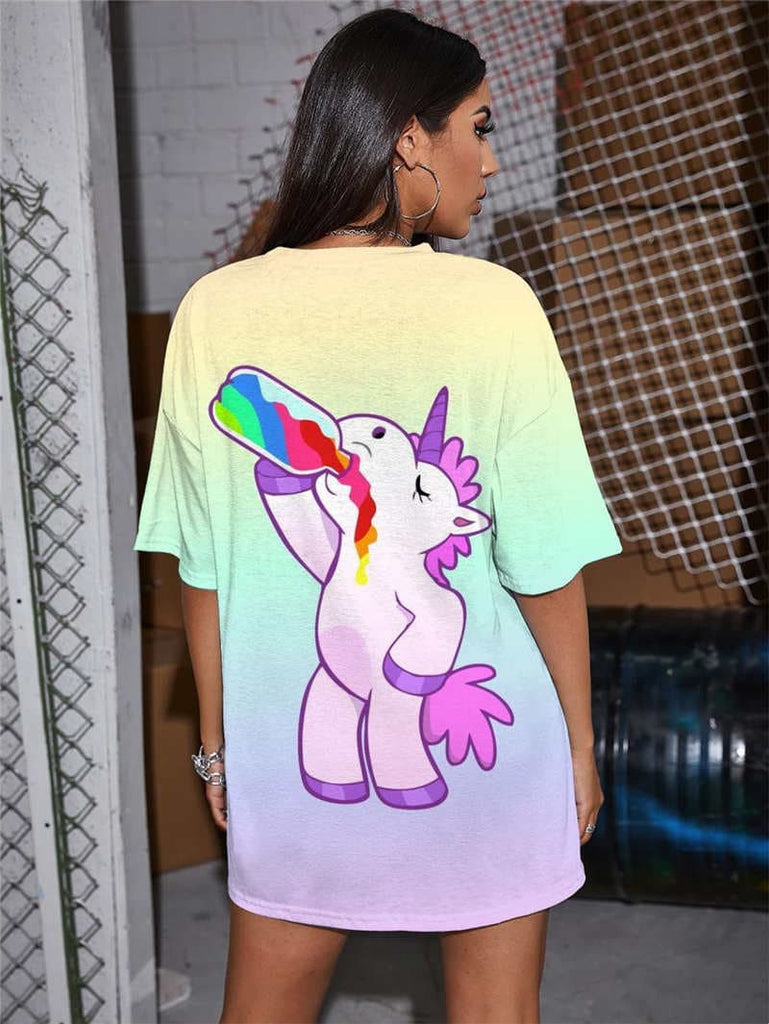 • Unicorn T-shirt Women Animal Gothic Rainbow Shirt Print Gradient Funny T shirts