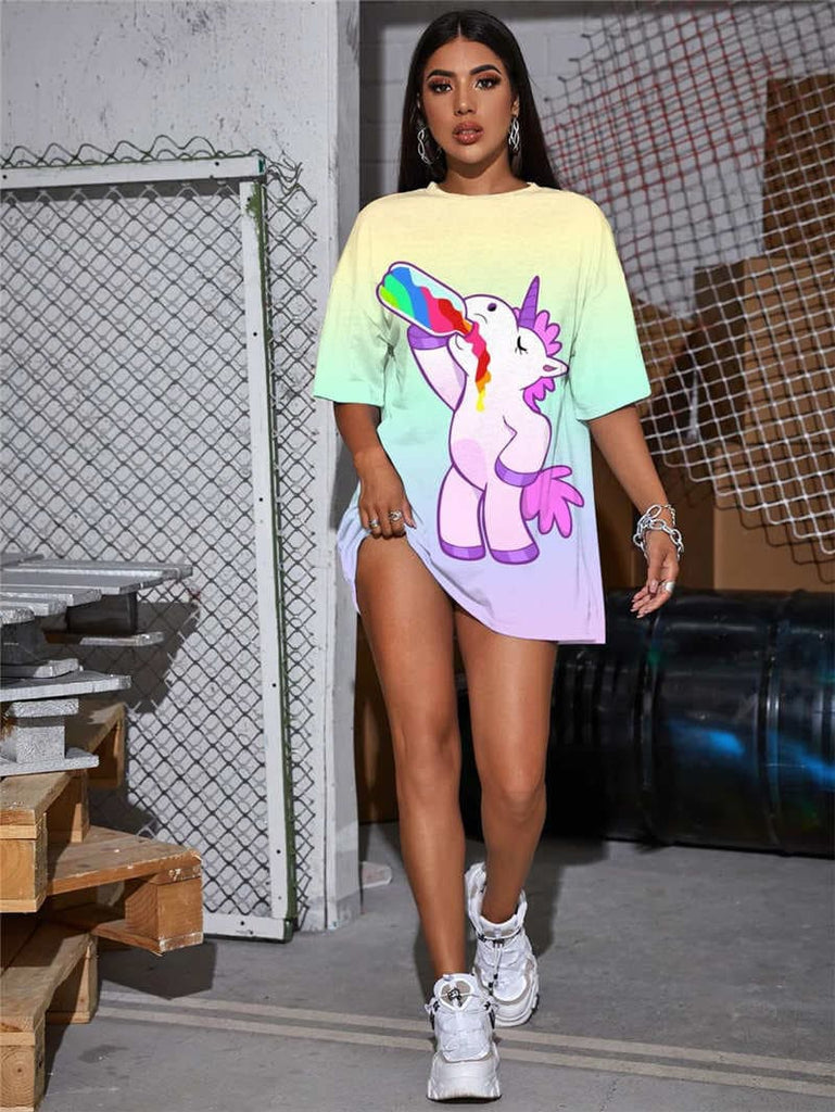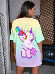 Unicorn T-shirt Women Animal Gothic Rainbow Shirt Print Gradient Funny T shirts