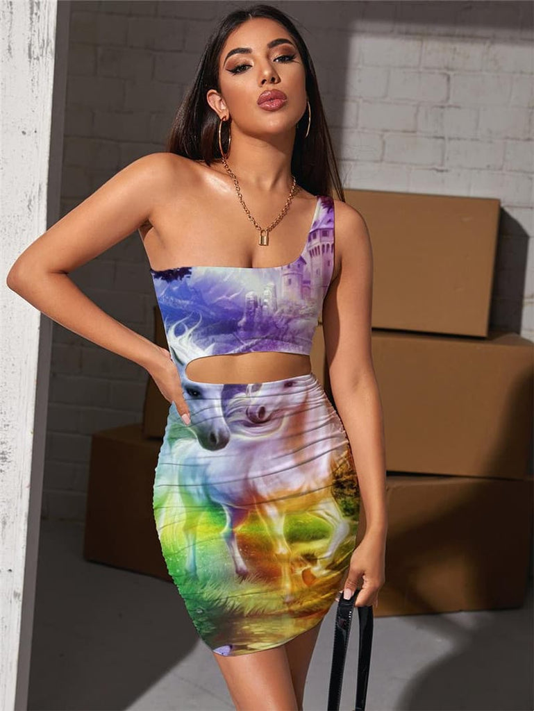 • Unicorn Dress Women Forest 3d Print Animal Vestido Sexy Harajuku Bodycon Dress