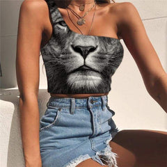 Animal Tank TopsAnime clothingHead Vest TopsHip Hop Vest TopsLadyLion TopsOne Shoulder CropSleeveless ShirtSummerTees Graphic