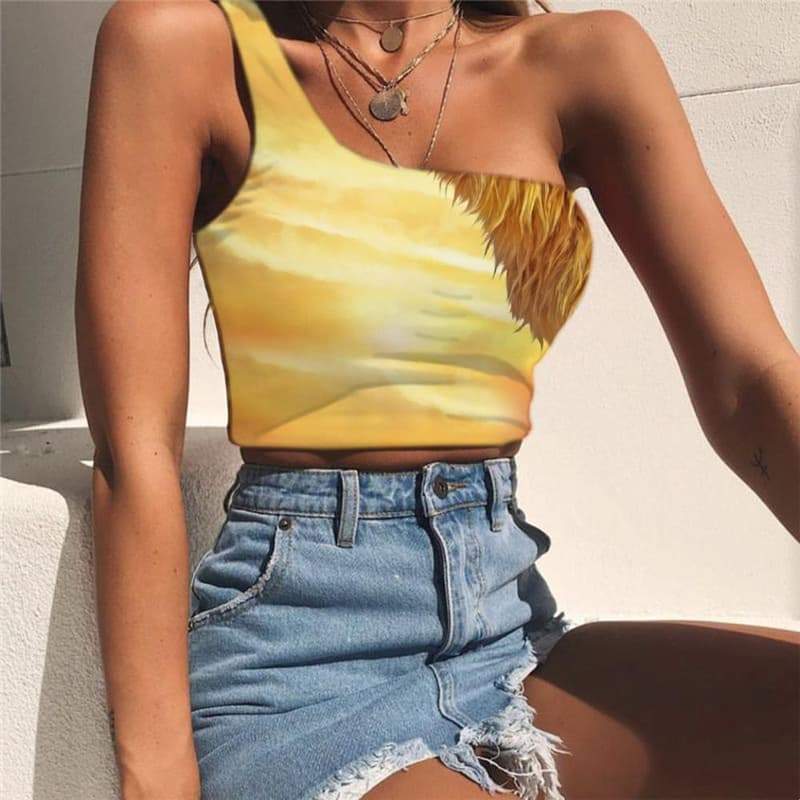 Animal Tank TopsAnime Vest TopsFemaleHarajuku clothesLion Vest TopsMidriff T shirtNebula TopsOne Shoulder CropSlimTees Graphic
